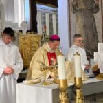 Zwieńczeniem celebracji było przeniesienie Najświętszego Sakramentu do ołtarza wystawienia. Przed Eucharystią biskup spotkał się ze wspólnotą sióstr klarysek.