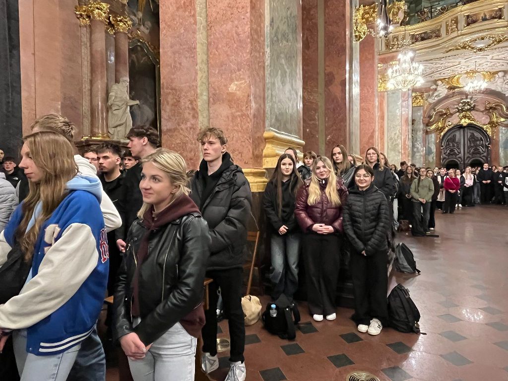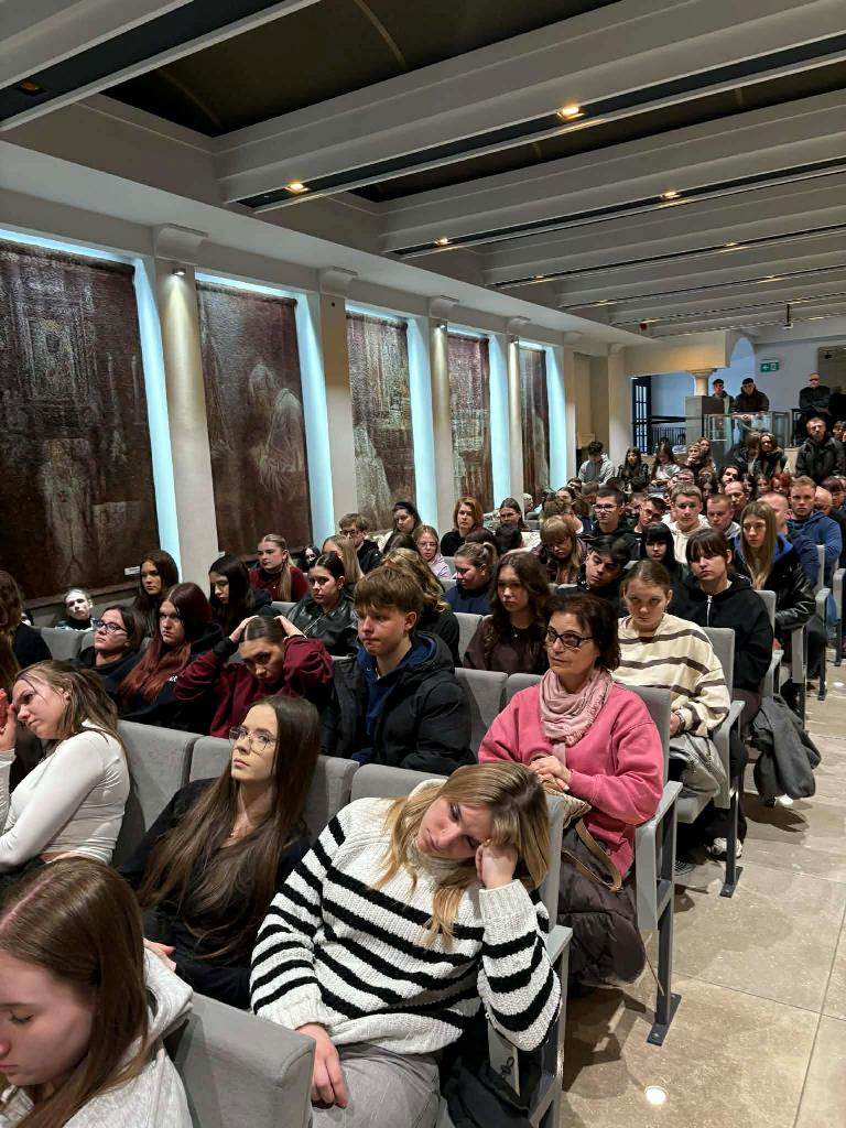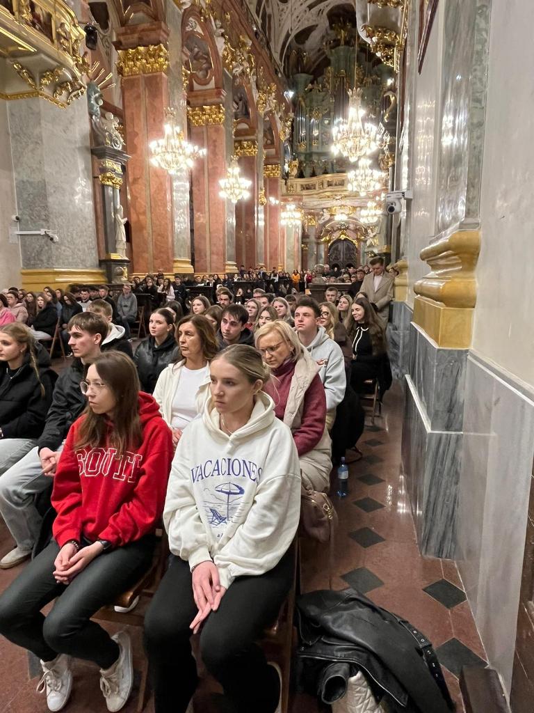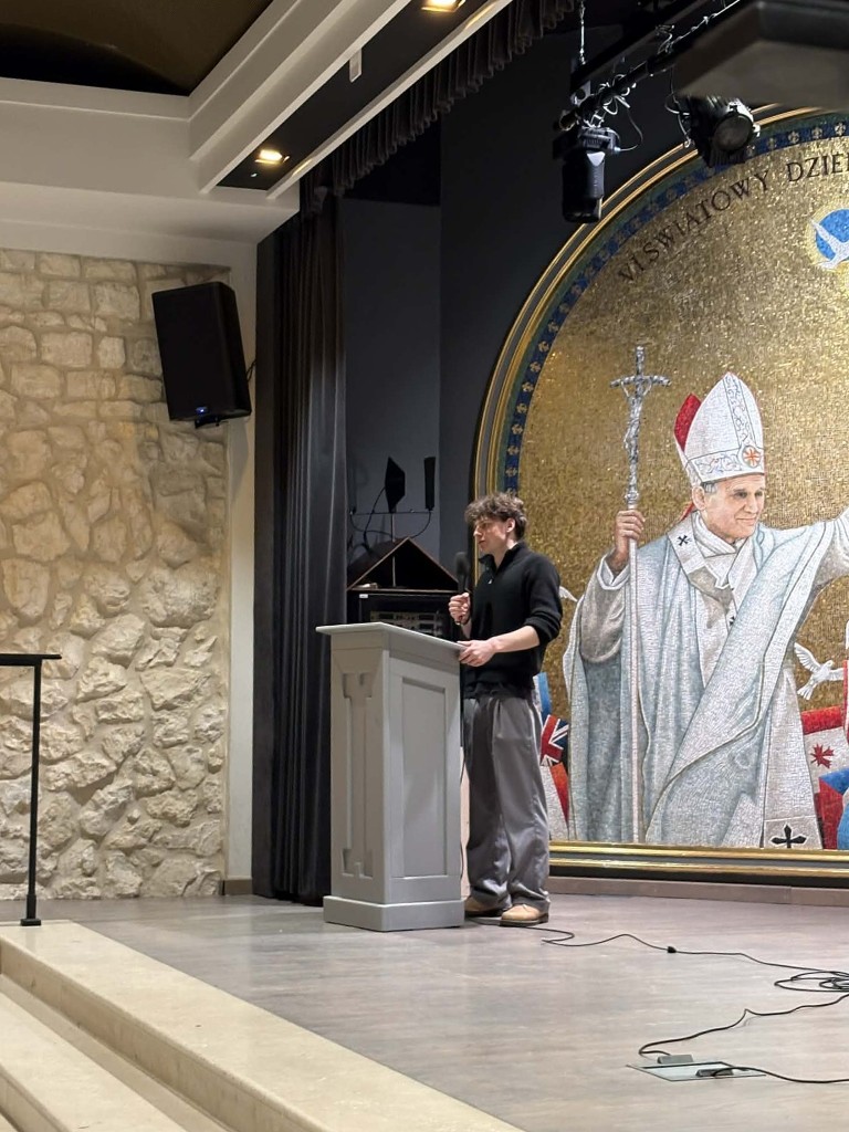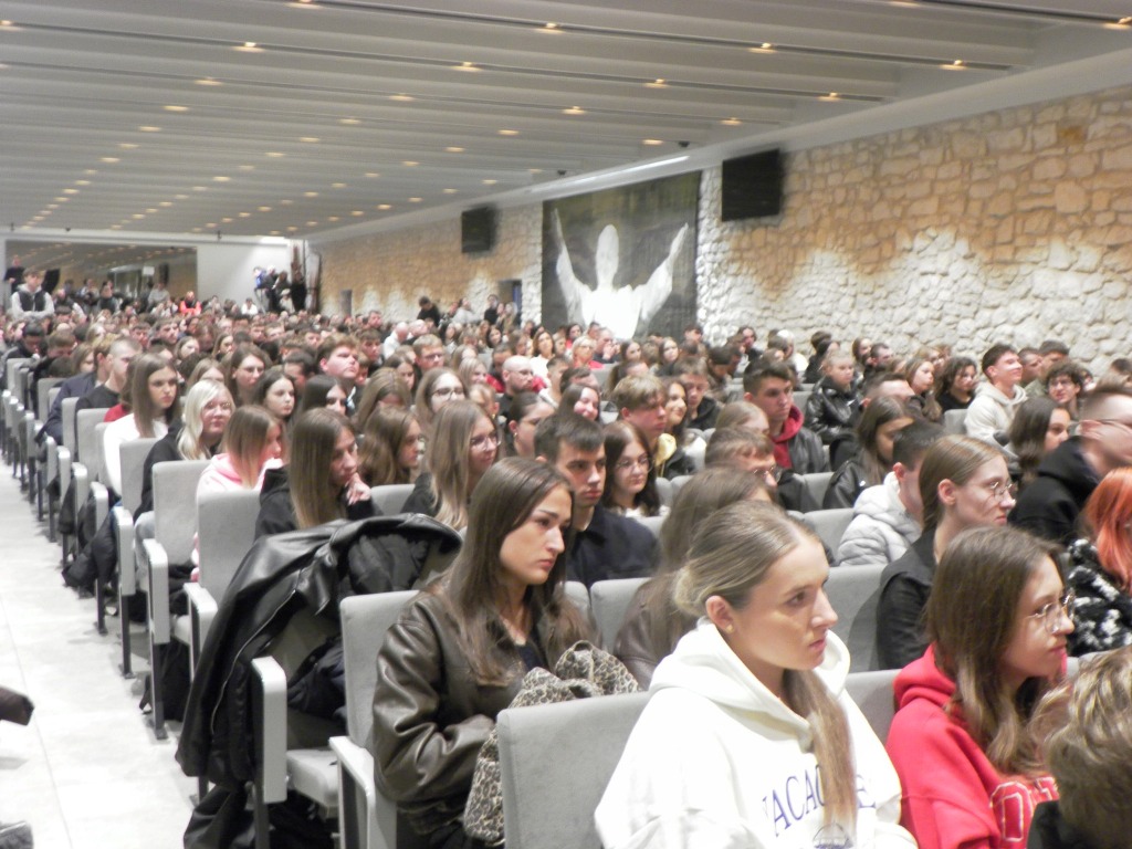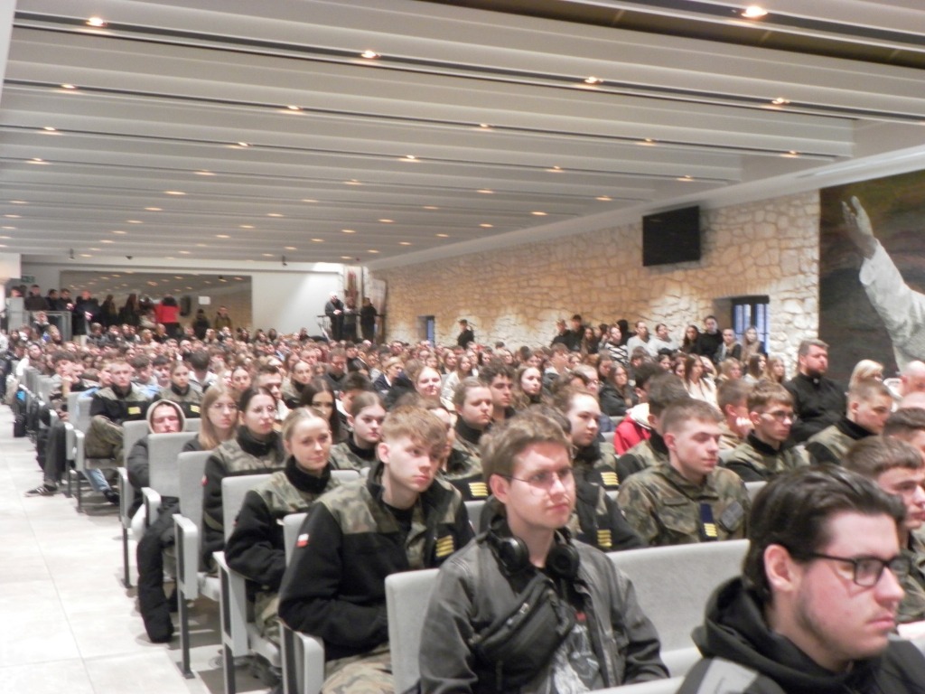 Blisko 900 maturzystów zgromadziło się na Auli Papieskiej, gdzie wysłuchali konferencji poprowadzonej przez Wojciecha Czubę – influencera internetowego (slimak-na-pustyni). W wystąpieniu poruszył on ideę człowieka pielgrzymującego.