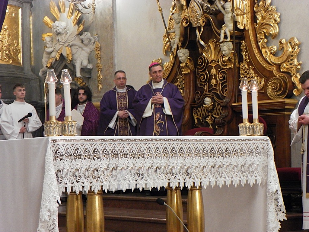 Najważniejszym punktem każdej pielgrzymki jest Eucharystia, której przewodniczył bp Piotr Sawczuk wraz z kapłanami koncelebrującymi. „Tu bije serce Matki” mówił ks. Patryk Nagórny – diecezjalny duszpasterz młodzieży na rozpoczęcie Mszy św. Zachęcał, aby maturzyści prosili Matkę nie tylko o pomoc w maturach, ale również w każdym innym „egzaminie”, który przyjdzie im zdawać w życiu. W homilii wygłoszonej przez bp. Piotra wybrzmiała istotna rola Maryi w życiu każdego człowieka, tym bardziej młodego. Pasterz diecezji nawiązując do postaci Abrahama, który odważnie usłuchał wezwania Boga i wyruszył w drogę, zachęcił maturzystów do odwagi w dorosłym życiu.