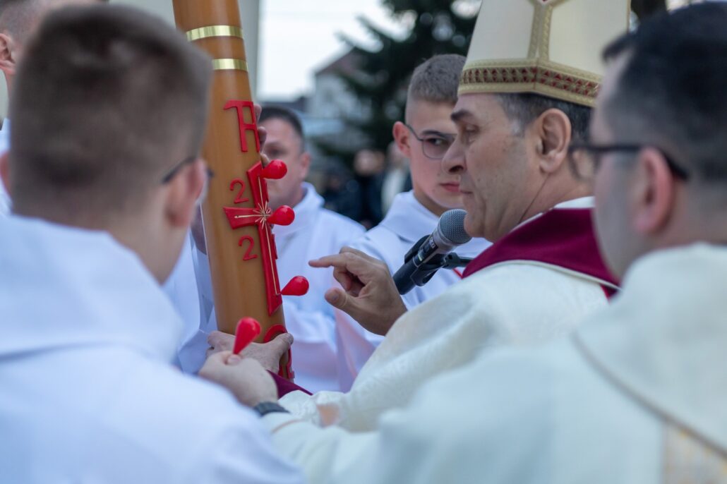 Biskup Piotr Sawczuk 19 kwietnia 2025 r. w sokołowskiej konkatedrze przewodniczył uroczystej liturii Wigilii Paschalnej.